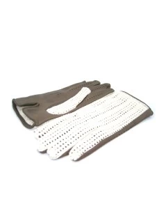 Guanto Guida Con Palmo In Nappa E Dorso In Crochet Fango