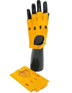 Guanto Guida In Nappa Mezze Dita Giallo Ocra