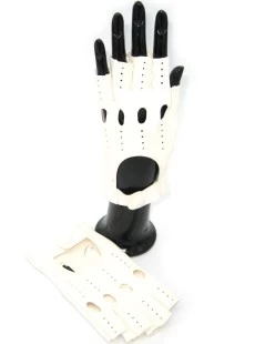 Guanto Guida In Nappa Sfoderato 1/2 Dita Bianco