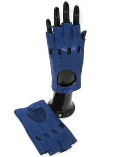Guanto Guida In Nappa Sfoderato 1/2 Dita Blu/Royal