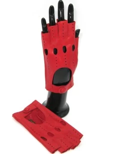 Guanto Guida In Nappa Sfoderato 1/2 Dita Rosso