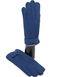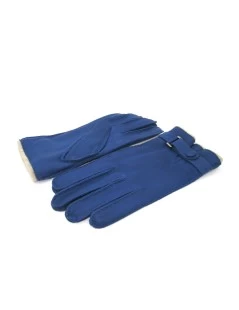 Guanto In Cervo Fod. Cashmere Con Cinturino Blu Inchiostro