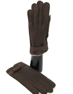 Guanto in Cervo faderato cashmere con cinturino al polso e cuciture a mano