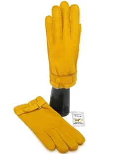 Guanto In Cervo Fod. Cashmere Con Cinturino Giallo