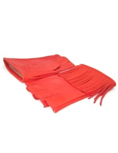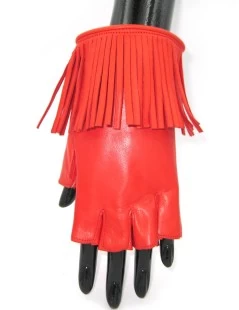 Guanto In Nappa 1/2 Dita Con Frange Foderato Seta Rosso