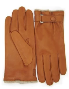 Guanto In Nappa Foderato Cashmere Con Cinturino Tan