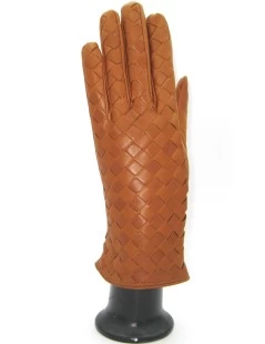 Guanto In Nappa Intrecciato Fodera Cashmere Tan