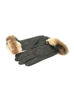 Guanto in Nappa 2bt con intarsi a contrasto e bordo di Rex al polso , foderato cashmere
