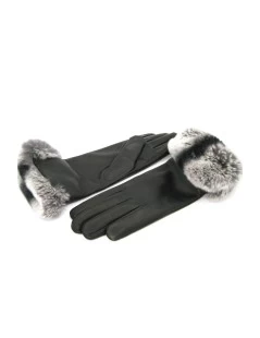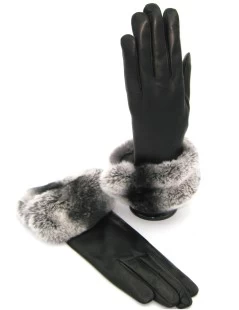 Guanto in Nappa con risvolto in Rex foderato in cashmere