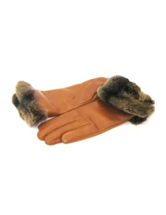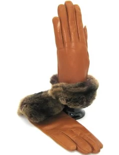 Guanto in Nappa con risvolto in Rex foderato in cashmere