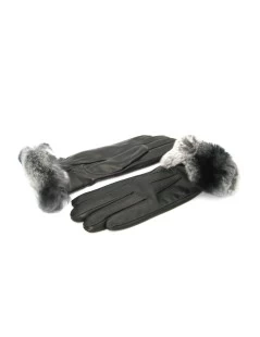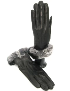 Guanto in nappa foderato cashmere con bordatura al polso di pelliccia in Rex